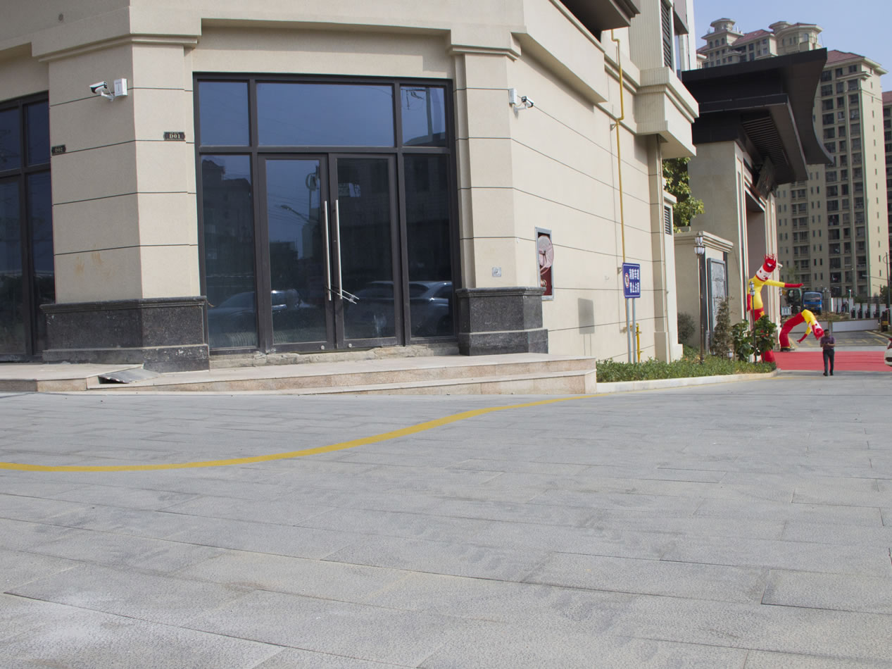 小區園林使用協進地鋪石鋪貼,樓房外立面使用協進彩碼磚鋪貼,
