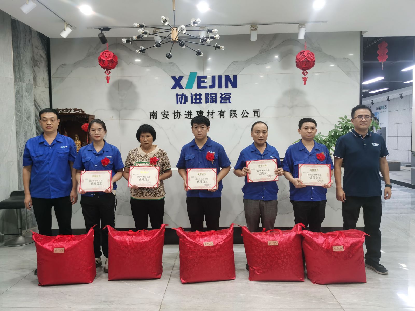 王少華總經理等公司領導為30名2023年度優秀員工頒發獎狀獎品,借此感謝全體協進人一年來的辛勤工作,祝福偉大的祖國繁榮昌盛、國泰民安。