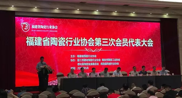 5月18日,福建省陶瓷行業協會第三次會員代表大會暨第三屆理事會第一次會議在晉江金瑪國賓酒店勝利召開。中國陶瓷工業協會副秘書長樊瑞新,省商務廳貿易與產業安全處主任科員陳勛勝,福建省企業與企業家聯合會主任謝建寧,泉州市經信委副主任王春陽,德化縣副處級干部徐文福,晉江磁灶鎮副鎮長陳國良,德化縣陶瓷辦主任徐永生,南平建陽二輕局主任劉建斌,福建省骨干企業代表二百余人參加此次會議。大會一致通過,由陳建新繼續出任福建省陶瓷行業協會會長,選舉產生了新一屆副會長、秘書長、監事長、副秘書長、常務理事、理事及監事會成員。葉少芬同志擔任第三屆理事會副會長兼秘書長,南安協進建材有限公司總經理王少華當選副會長。