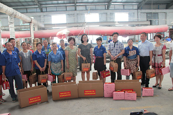 7月11日上午,南安市總工會、官橋鎮(zhèn)總工會領導蒞臨協(xié)進公司,對一線員工表達了親切的關(guān)心和慰問,并特意送來一批防暑降溫食品和飲料慰問全體員工,我們向各位領導表示感謝!并感謝黨和政府對我們的關(guān)心和對企業(yè)的支持!